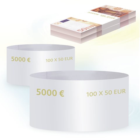 Банковская упаковка, исполненная в виде склеенной кольцевой поперечной бандероли с нанесением количества банкнот и номинала, а так же другой обязательной информации. Позволяет кассиру быстро, просто и надежно сформировать корешок банкнот (100 листов).