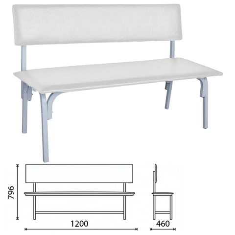 Банкетка со спинкой "Астрид", 1200х450х800 мм, каркас светло-серый, кожзам светло-серый