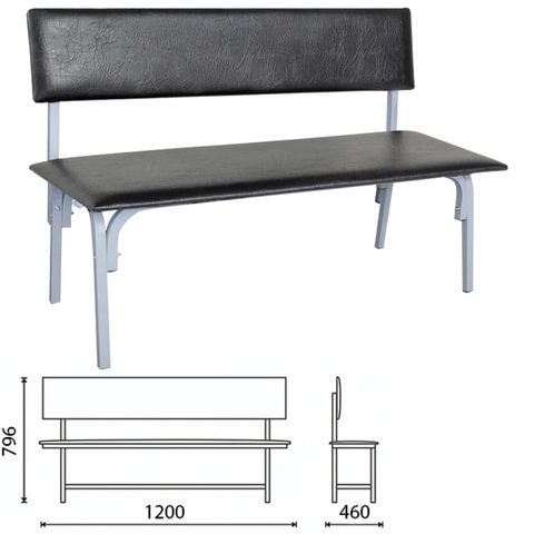 Банкетка со спинкой "Астрид", 1200х450х800 мм, серый каркас, кожзам черный