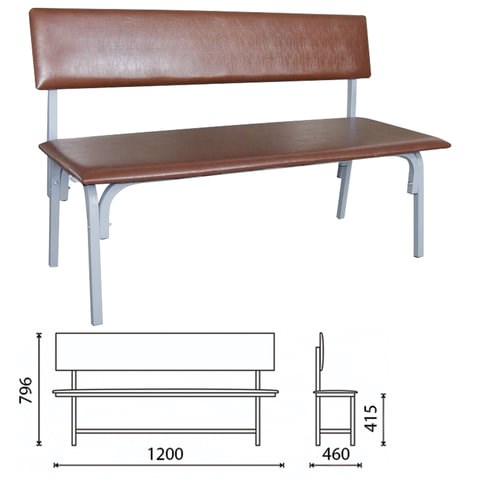 Банкетка со спинкой "Астрид", 1200х450х800 мм, серый каркас, кожзам коричневый