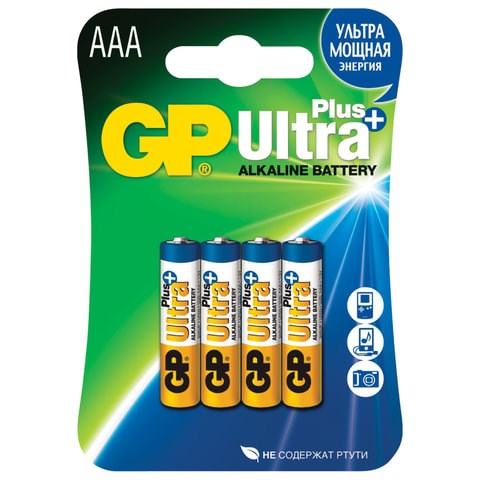 Батарейки КОМПЛЕКТ 4 шт., GP Ultra Plus G-Tech, AAA (LR03), алкалиновые, мизинчиковые, 24AUPA21-2CRSB4
