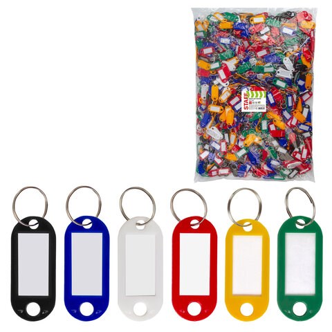 Бирки для ключей КОМПЛЕКТ 1000 ШТ., длина 50 мм, инфо-окно 30х15 мм, АССОРТИ, STAFF, 237494, 91