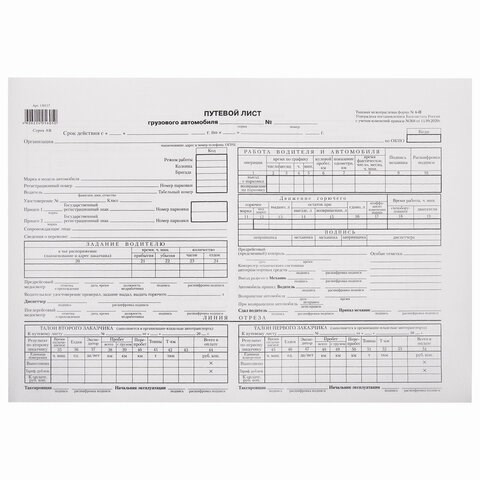 - Вид бланка: Путевой лист грузового автомобиля с талоном