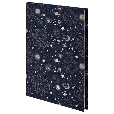 Жесткая обложка с матовой ламинацией и тиснением фольгой долго сохраняет привлекательный внешний вид и позволяет делать записи на весу. 80 листов позволят зафиксировать большой объем информации. Линовка блока в клетку дает возможность аккуратно заполнить цифровые значения, а также нанести чертежные зарисовки. Внутренний блок выполнен из офсета белого цвета плотностью 60 г/м2 и крепится к обложке с помощью книжного переплета. Формат блокнота А5 (134х206 мм) позволит владельцу поместить его в кейс или сумку малых габаритов. Обложка блокнота с оригинальным рисунком - стильное решение среди записных аксессуаров.