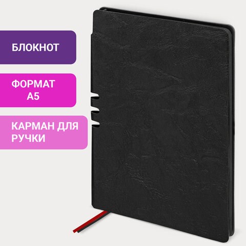 Блокнот А5 (140х200 мм), BRAUBERG "NEBRASKA", под кожу, 80 л., линия, черный, 113411