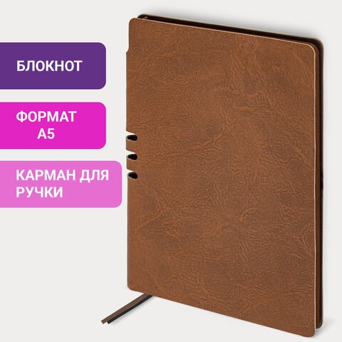 Блокнот А5 (140х200 мм), BRAUBERG "NEBRASKA", под кожу, 80 л., линия, коричневый, 113412