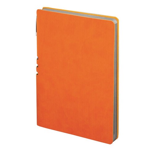 Мягкая интегральная обложка стилизована под кожу. Имеет закругленные уголки. Подходит для горячего тиснения. 112 листов позволят зафиксировать большой объем информации. Линовка блока в линию. Внутренний блок выполнен из офсета белого цвета плотностью 70 г/м2 и крепится к обложке с помощью книжного переплета. Прокрашенный срез блокнота придает изделию шарм. Дополнением является закладка-ляссе, с помощью которой при необходимости можно быстро открыть нужную страницу и шариковая ручка. Формат блокнота А5 (140х200 мм) позволит владельцу поместить его в кейс или сумку малых габаритов.