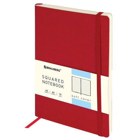 Блокнот А5 (148x218 мм), BRAUBERG "Metropolis Ultra", под кожу, 80 л., резинка, клетка, красный, 111018