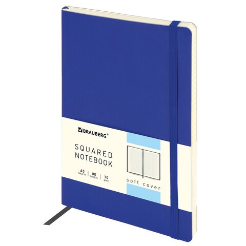 Блокнот А5 (148x218 мм), BRAUBERG "Metropolis Ultra", под кожу, 80 л., резинка, клетка, синий, 111017