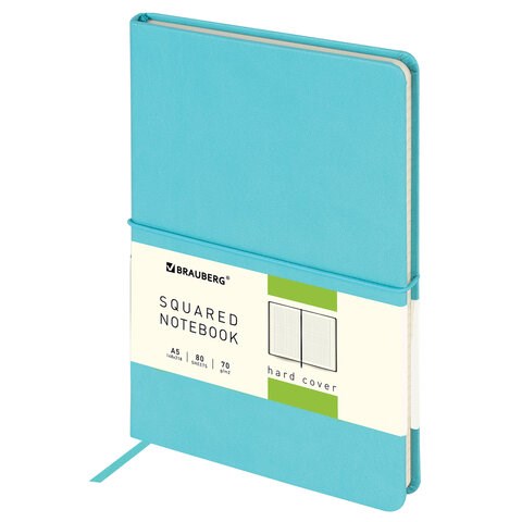 Блокнот А5 (148x218 мм), BRAUBERG "Metropolis X", под кожу, 80 л., резинка, клетка, бирюзовый, 111035