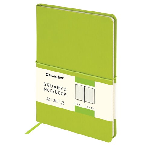 Блокнот А5 148x218 мм, BRAUBERG Metropolis X, под кожу, 80 л., резинка, клетка, светло-зеленый, 111033