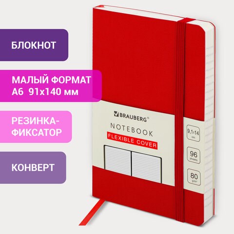 Блокнот МАЛЫЙ ФОРМАТ (91х140 мм) А6, BRAUBERG ULTRA, под кожу, 80 г/м2, 96 л., линия, красный, 113028