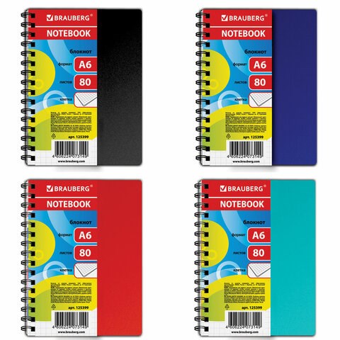 Блокнот МАЛЫЙ ФОРМАТ А6 105х145 мм, 80 л., гребень, пластик, клетка, BRAUBERG, "Офисный", 125399