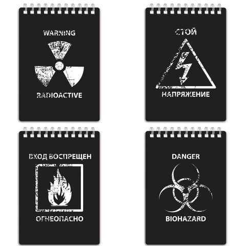 Блокнот МАЛЫЙ ФОРМАТ А6 105х148 мм, 80 л., гребень, пластик с печатью, клетка, BRAUBERG, "Danger", 125380
