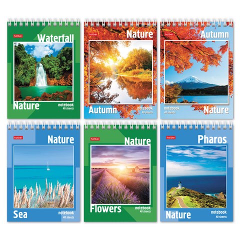 Блокнот МАЛЫЙ ФОРМАТ А6 110х145 мм, 40 л., гребень, лакированная обложка, клетка, HATBER, "Пейзажи", 40Б6B1гр, В12307