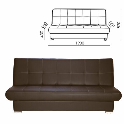 Диван мягкий раскладной "Модесто", 1900х900х820 мм, экокожа, коричневый