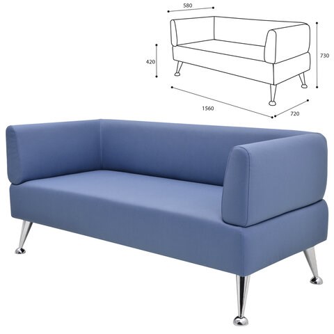 Диван мягкий трехместный "Норд", "V-700", 1560х720х730 мм, c подлокотниками, экокожа, голубой