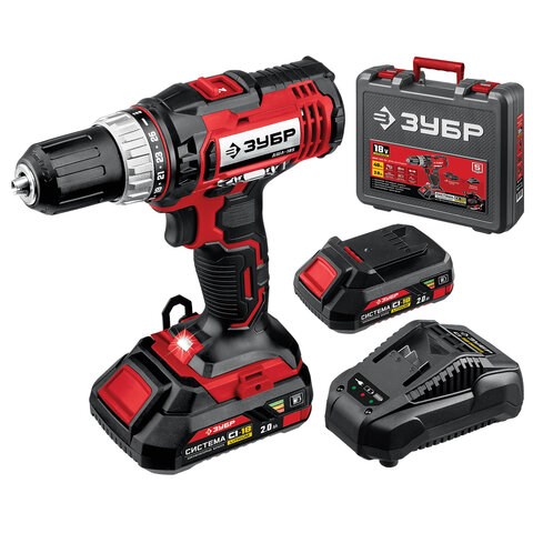 Дрель-шуруповерт безударная АККУМУЛЯТОРНАЯ, с двумя аккумуляторами 2 Ач, 18 В, ЗУБР ДШЛ-185-22