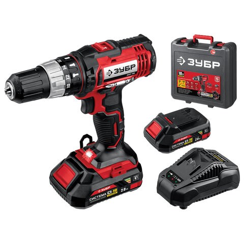 Дрель-шуруповерт ударная АККУМУЛЯТОРНАЯ, с двумя аккумуляторами 2 Ач, 18 В, ЗУБР ДШУ-185-22
