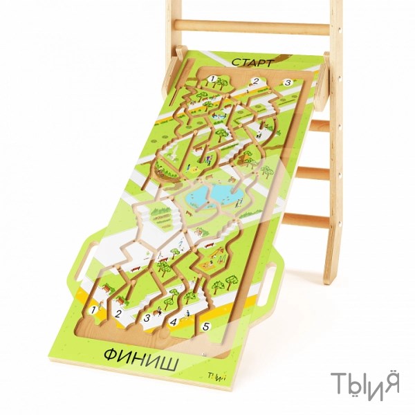 - Всестороннее развитие: модуль способствует комплексному развитию ребенка — от крупной моторики и ловкости на горке до усидчивости, логики и точности движений в лабиринте.