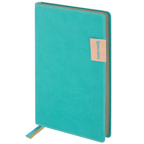 Ежедневник недатированный А5 (138х213 мм), BRAUBERG "AIM", под кожу, 136 л., бирюзовый, 113419