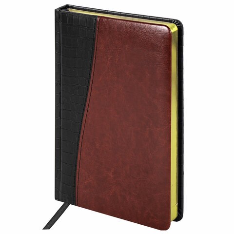 Ежедневник недатированный А5 138х213 мм BRAUBERG "Cayman" под кожу, 160 л., черный/темно-коричневый, 123399