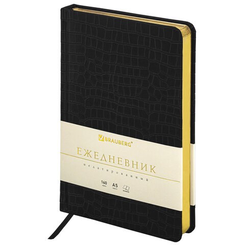 Ежедневник недатированный А5 138х213 мм BRAUBERG "Comodo" под кожу, 160 л., черный, 124974