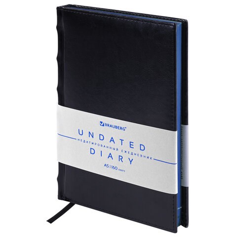 Ежедневник недатированный А5 138х213 мм BRAUBERG "FLAME", под кожу, 160 л., черный, синий срез, 113427