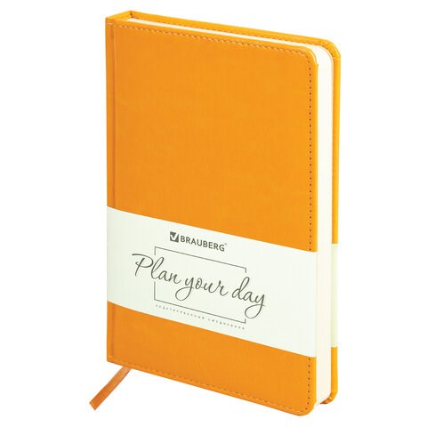 Ежедневник недатированный А5 138х213 мм BRAUBERG "Imperial" под кожу, 160 л., оранжевый, 111856