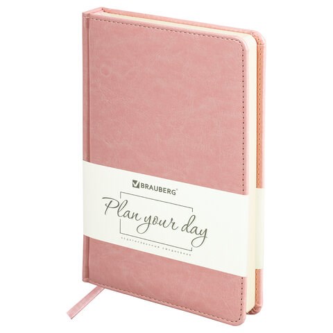Ежедневник недатированный А5 138х213 мм BRAUBERG "Imperial" под кожу, 160 л., розовый, 111859