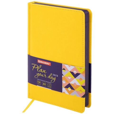 Ежедневник недатированный А5 138х213 мм BRAUBERG "Rainbow" под кожу, 136 л., желтый, 111670