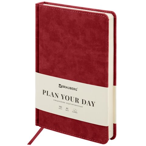 Ежедневник недатированный А5 138х213 мм BRAUBERG "Status", под кожу, 160 л., красный, 113364