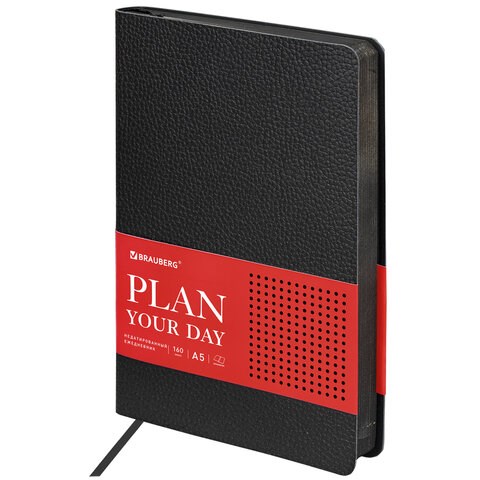 Ежедневник недатированный А5 (138х213 мм) BRAUBERG "Stylish", кожзам, гибкий, 160 л., черный, 126224