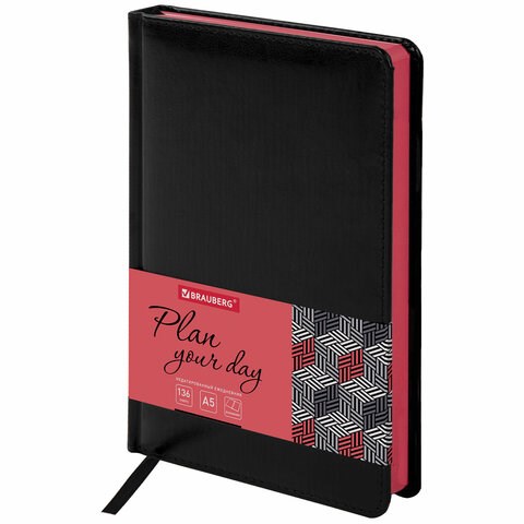 Ежедневник недатированный А5 138x213 мм BRAUBERG "Rainbow", под кожу, 136 л., черный/красный, 113498