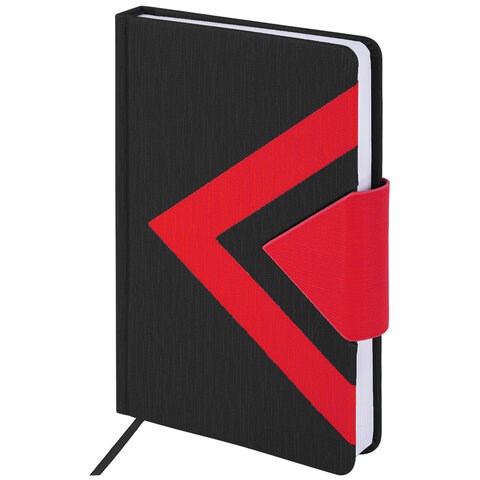 Ежедневник недатированный А5 138x213 мм BRAUBERG "Waves" под кожу, застежка 160 л., черный/красный, 111876