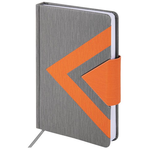 Ежедневник недатированный А5 138x213 мм BRAUBERG "Waves" под кожу, застежка 160 л., серый/оранжевый, 111877