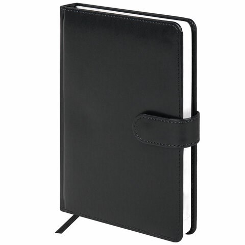 Внутренний блок включает 160 листов белой бумаги плотностью 70 г/м2. Каждая страничка имеет перфорированный угол. Твердая обложка, прошитая по периметру и стилизованная под гладкую кожу фиксируется магнитной застежкой, поэтому ежедневник не откроется в сумке или портфеле и страницы не помнутся.