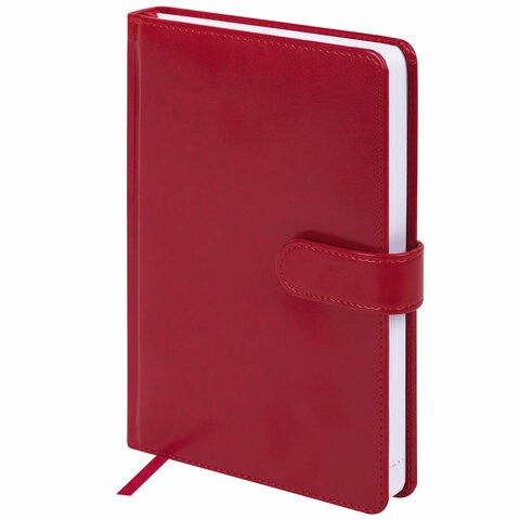 Внутренний блок включает 160 листов белой бумаги плотностью 70 г/м2. Каждая страничка имеет перфорированный угол. Твердая обложка, прошитая по периметру и стилизованная под гладкую кожу фиксируется магнитной застежкой, поэтому ежедневник не откроется в сумке или портфеле и страницы не помнутся.