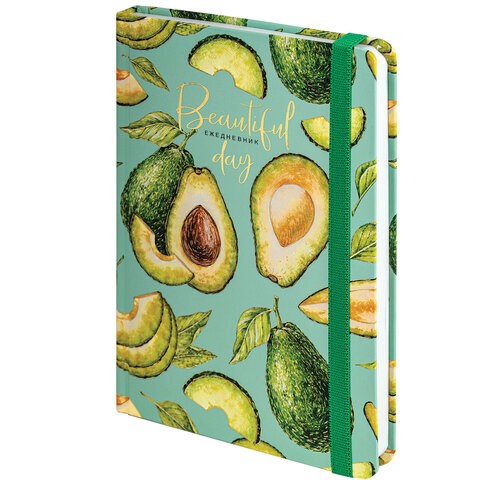 Ежедневник недатированный с резинкой А5 (145х203 мм), BRAUBERG, твердый, фольга, 128 л., "Avocado", 114563
