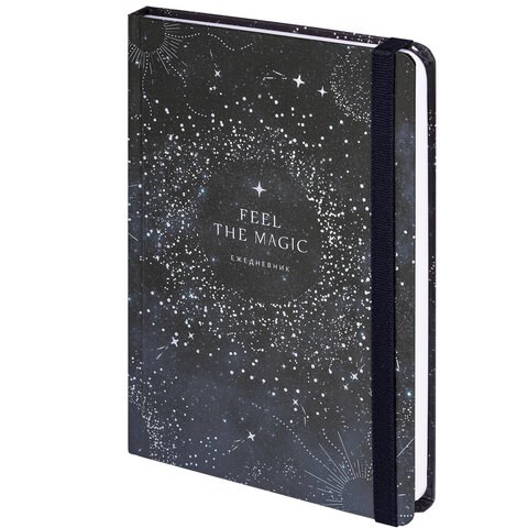 Ежедневник недатированный с резинкой А5 (145х203 мм), BRAUBERG, твердый, фольга, 128 л., "Stars", 114566