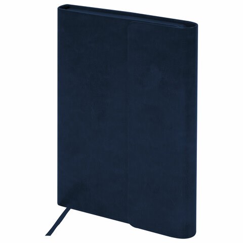 Внутренний блок включает 160 листов белой бумаги плотностью 70 г/м2. Каждая страничка имеет перфорированный угол. Благодаря стандартному формату А5 ежедневник удобно использовать как в офисе, так и на выездных деловых встречах. Интегральная (мягкая) обложка, выполненная в классическом темно-синем цвете и стилизованная под гладкую кожу, фиксируется магнитным клапаном, поэтому ежедневник не откроется в сумке или портфеле и страницы не помнутся. Подходит для горячего тиснения.