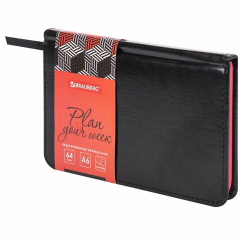 Еженедельник недатированный МАЛЫЙ ФОРМАТ 95х155 мм А6 BRAUBERG "Rainbow", под кожу, 64 л., черный, 114485