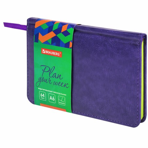 Еженедельник недатированный МАЛЫЙ ФОРМАТ 95х155 мм А6, BRAUBERG "Rainbow" под кожу, 64 л., сиреневый, 114486