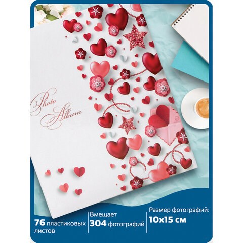 Фотоальбом BRAUBERG "Любовные истории" на 304 фото 10х15см, твердая обложка, термосклейка, 391159