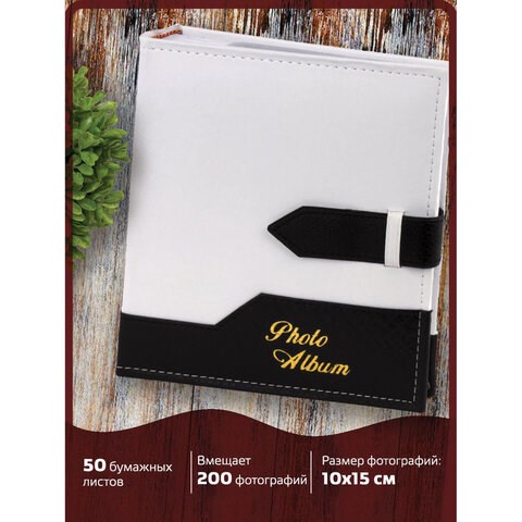Фотоальбом BRAUBERG на 200 фото. 10х15 см, под замшу, бумажные страницы, бокс, белый с черным, 391114
