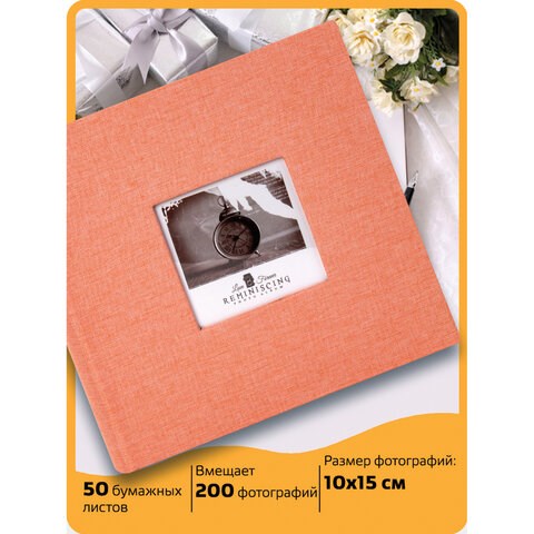 Фотоальбом BRAUBERG "Персик" на 200 фото 10х15 см, ткань, персиковый, 391190