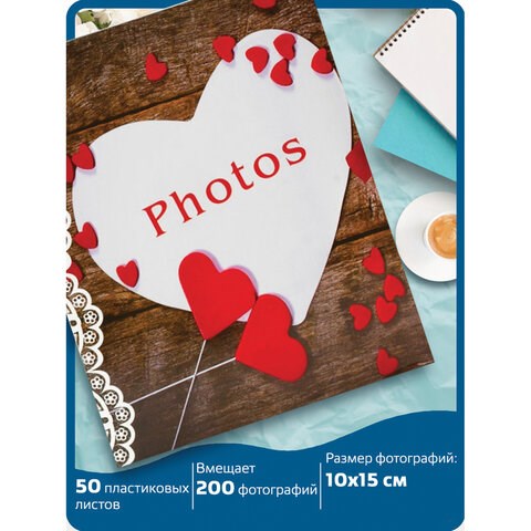 Фотоальбом BRAUBERG "С любовью" на 200 фото 10х15 см, твердая обложка, термосварка, 391158