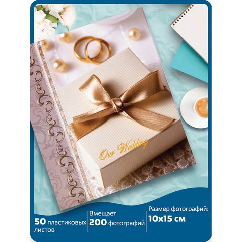 Фотоальбом BRAUBERG "Свадебный подарок" на 200 фото 10х15 см, твердая обложка, переплет, бокс, 391153