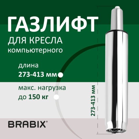 Газлифт BRABIX A-140 стандартный, ХРОМ, длина в открытом виде 413 мм, d50 мм, класс 2, 532005