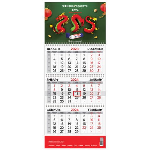 Корпоративный квартальный календарь ОФИСНАЯ ПЛАНЕТА на 2024 год.